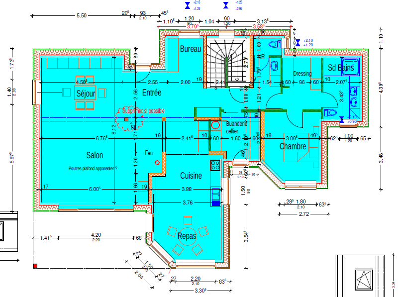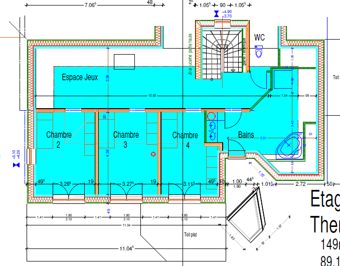 - présence d’étages/sous-sol : 1 sous-sol, 1 étage